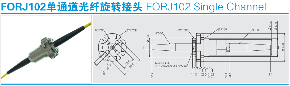 FORJ102單通道光纖滑環(huán)用于單模或多模系統(tǒng)的光電旋轉(zhuǎn)連接;完全的雙向旋轉(zhuǎn);與現(xiàn)有的電氣滑環(huán)設(shè)計相融合;全封閉結(jié)構(gòu);能為客戶量身定制所需要的光纖滑環(huán)