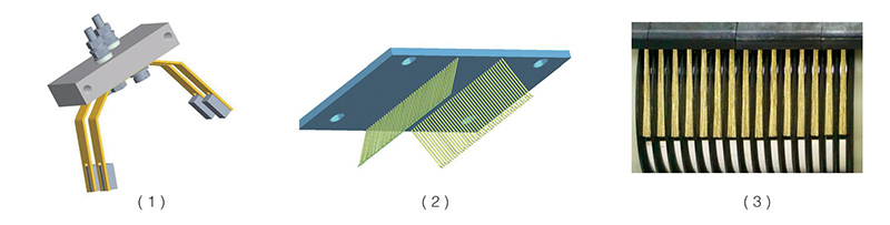 束刷是指一種特殊的滑行電氣接觸設(shè)計。束刷簡單的說就是將單獨的金屬絲進(jìn)行校準(zhǔn)并裝進(jìn)一個金屬管里,如下面的圖。在這個懸臂設(shè)計中,束刷是散狀的,無束縛的一端依附在環(huán)道表面的槽里。