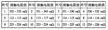 動(dòng)態(tài)接觸電阻的分析在檢測(cè)過(guò)程中,各環(huán)路動(dòng)態(tài)接觸電阻是動(dòng)態(tài)顯示的,取其最大值與最小值。為了確保環(huán)路導(dǎo)電傳輸?shù)姆€(wěn)定性,各環(huán)路的接觸電阻變化量一般要求不超過(guò)10mΩ。12路導(dǎo)電滑環(huán)動(dòng)態(tài)接觸電阻數(shù)據(jù)如表1所示。表1,12路導(dǎo)電滑環(huán)動(dòng)態(tài)接觸電阻實(shí)測(cè)表