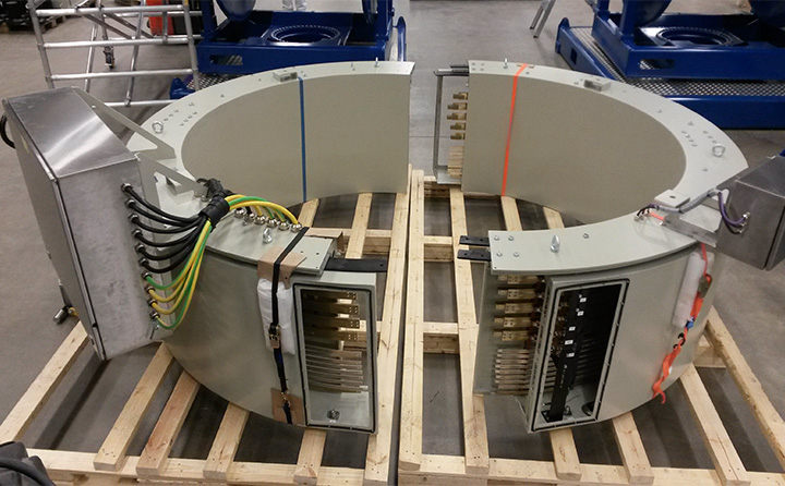另一款我們又稱分體式盤式滑環(huán),分體式盤式滑環(huán)用于空間受限的應(yīng)用場合中,滑環(huán)不能安裝在單個部件的結(jié)構(gòu)上,適用于在現(xiàn)有的結(jié)構(gòu)之上添加滑環(huán),改善電纜或控制信號的傳輸方式,分體式盤式滑環(huán)可用于大型的卷筒,電纜制造機(jī),大型電機(jī)和不同的測試系統(tǒng)。
