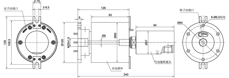 全盛氣(液)電氣動滑環(huán)電信號與氣路、液路混走; 結(jié)構(gòu)緊湊